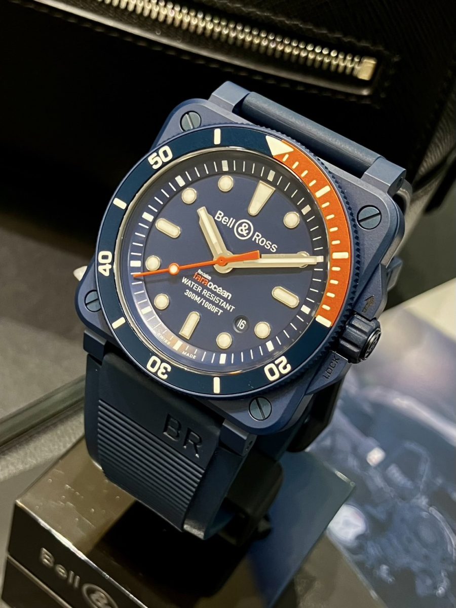 フランス初の海洋に特化した公益財団法人でであり、2003年にアパレルブランド「アニエスベー」創設者のアニエス・トゥルブレによって設立された “タラ オセアン財団”とのパートナーシップを記念して創られた特別仕様モデルである本作品は、42mm径・硬質なマットブルーセラミック製ケースにオレンジが映える精悍な面持ちが魅力的です⛵️✨