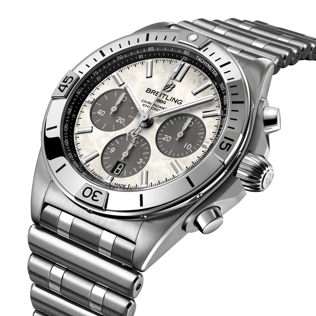 『クロノマット B01 42 ジャパン・エディション』は、文字盤にホワイト又はブラックの「マザー・オブ・パール(MOP)」を取り入れた日本の為の特別仕様です