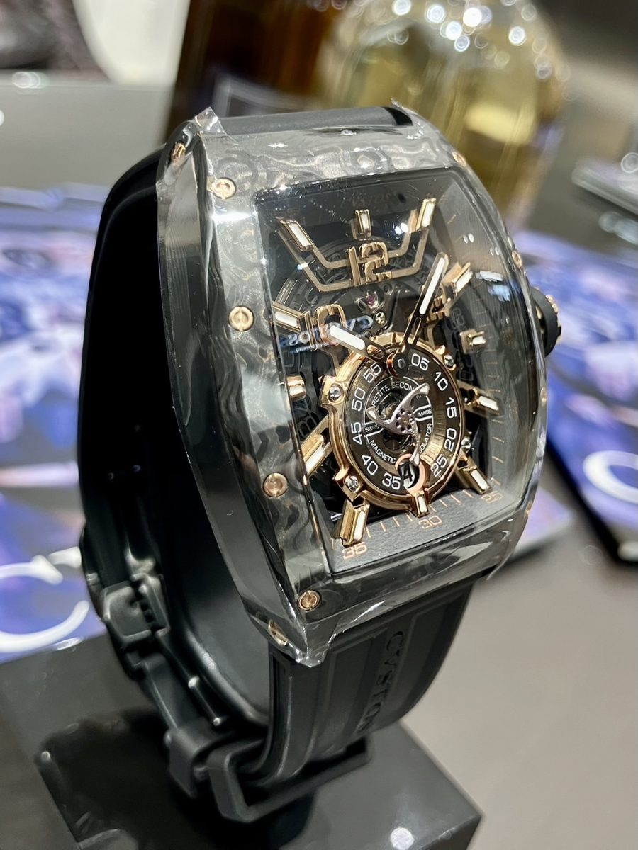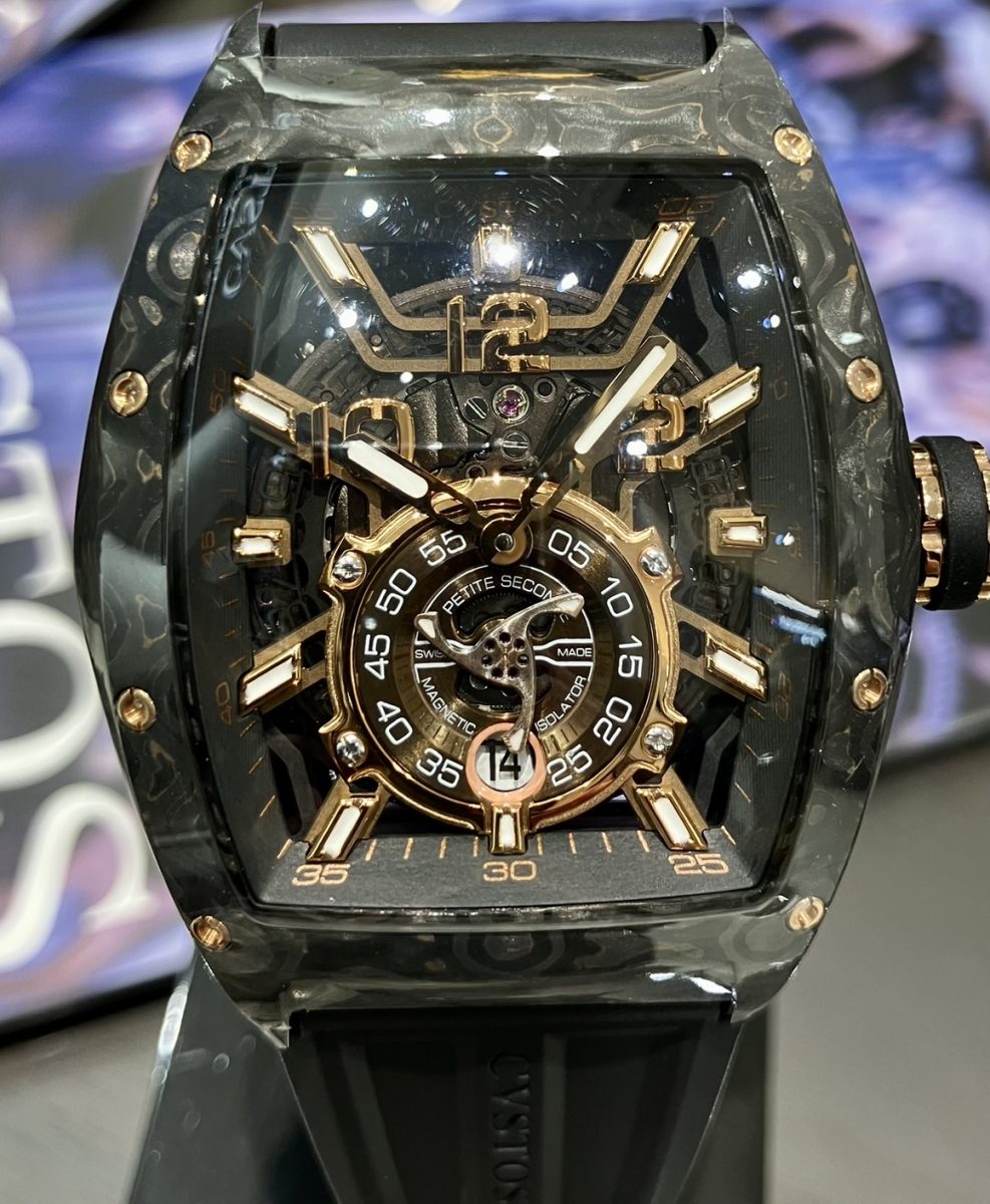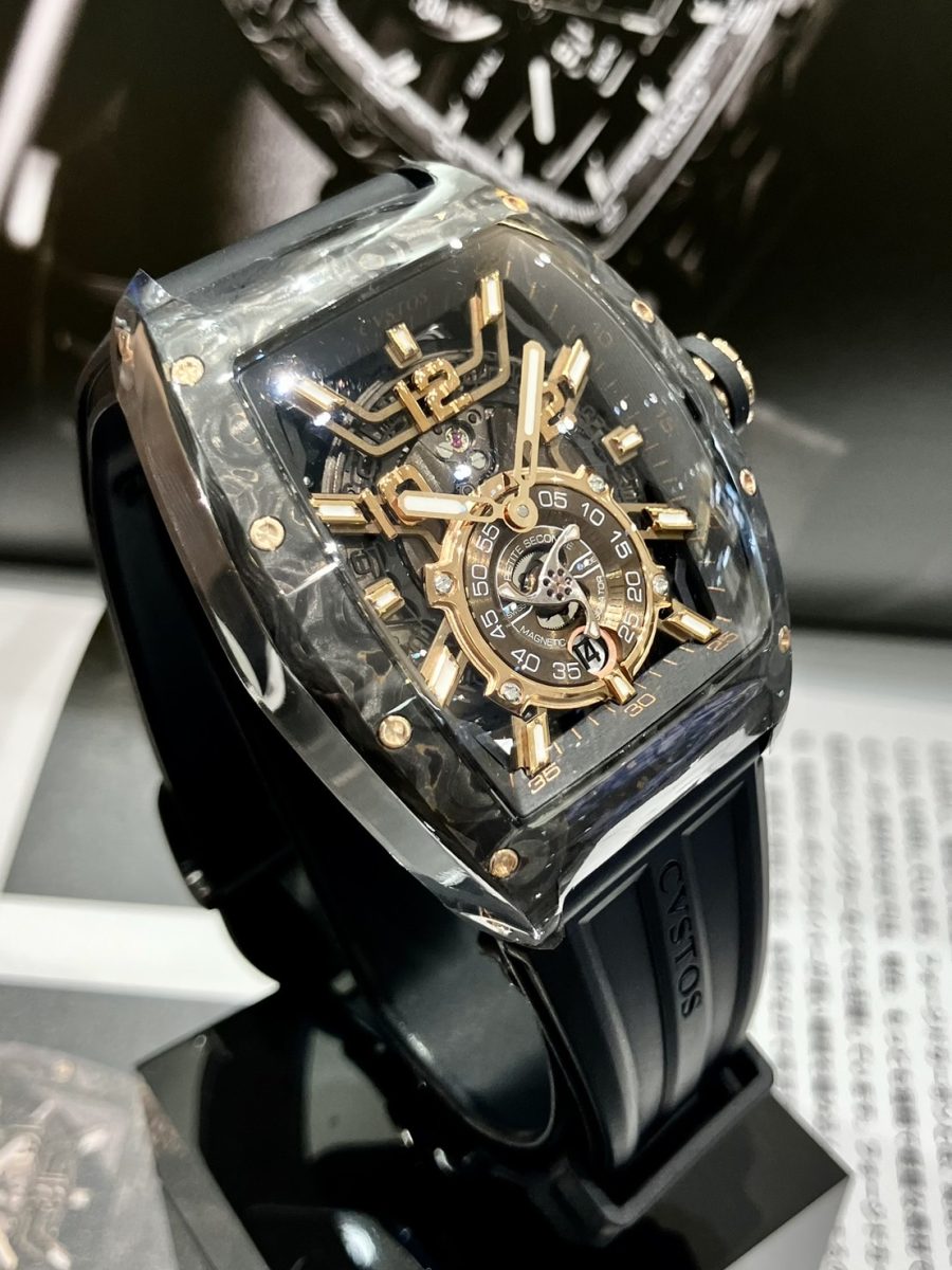 「クストス」の時計ケースに採用されているカーボンは、数あるカーボン素材でも最高峰の品質を誇り、ゴールド同様に非常に高価な原料から高温高圧の鍛造加工をして制作されております🌟