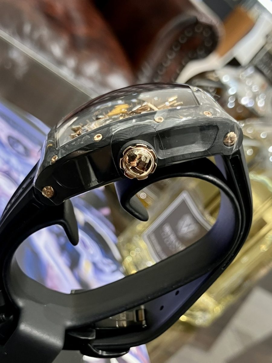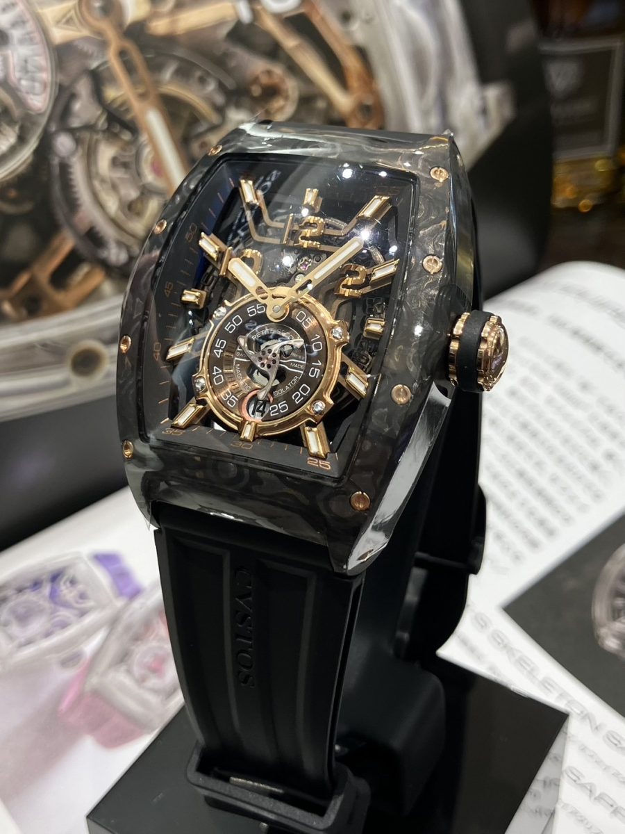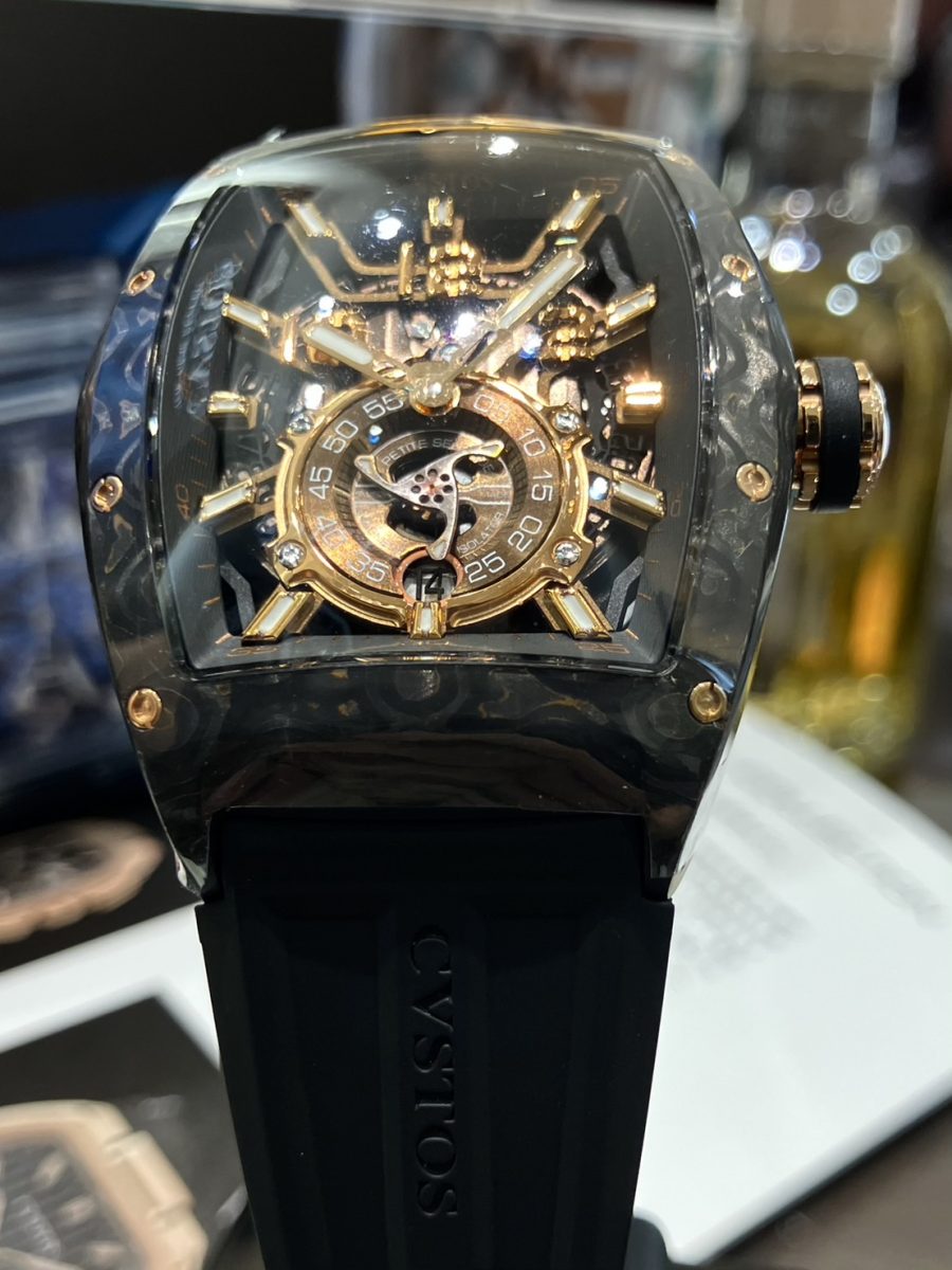 「クストス」の時計ケースに採用されているカーボンは、数あるカーボン素材でも最高峰の品質を誇り、ゴールド同様に非常に高価な原料から高温高圧の鍛造加工をして制作されております🌟
