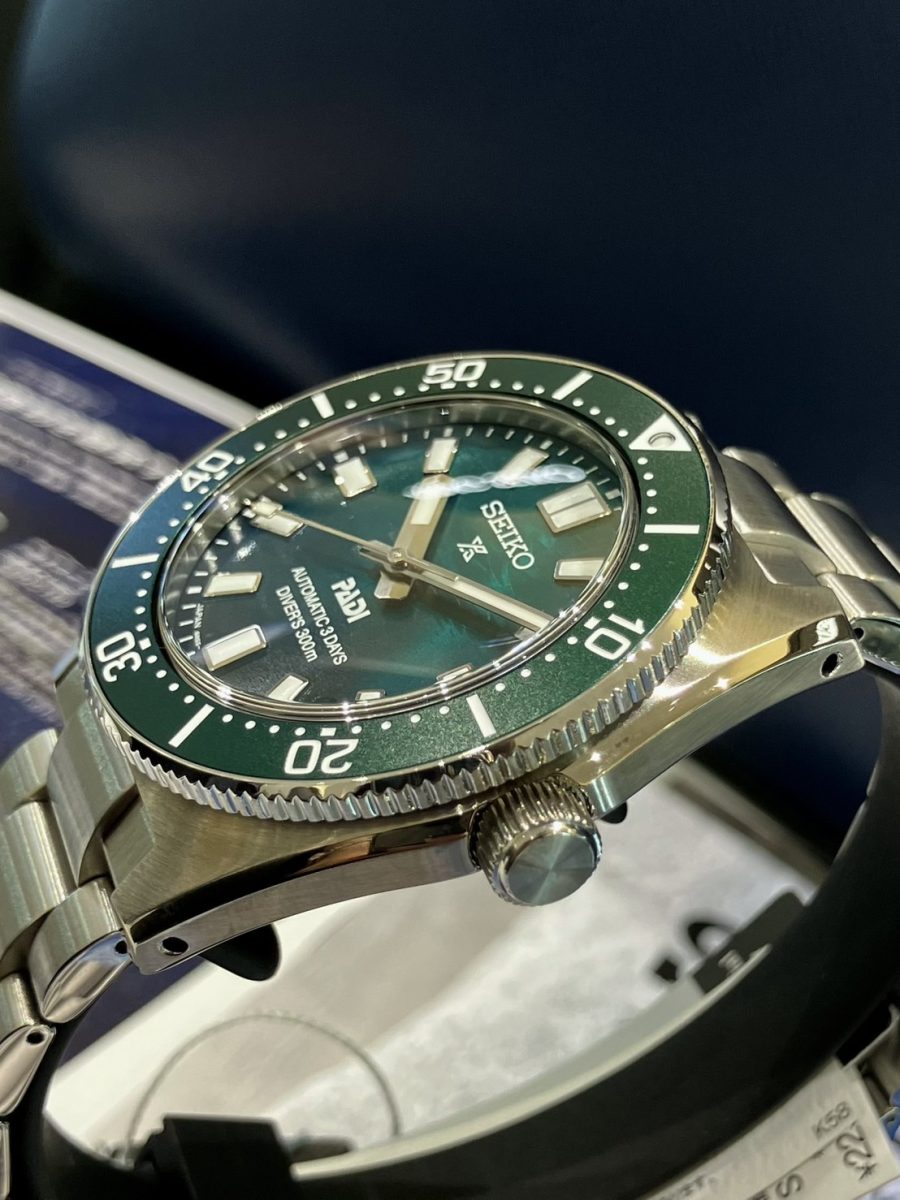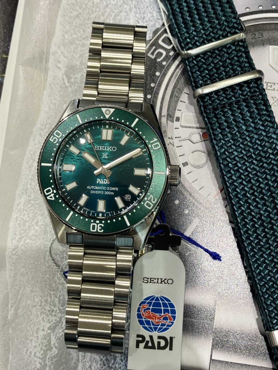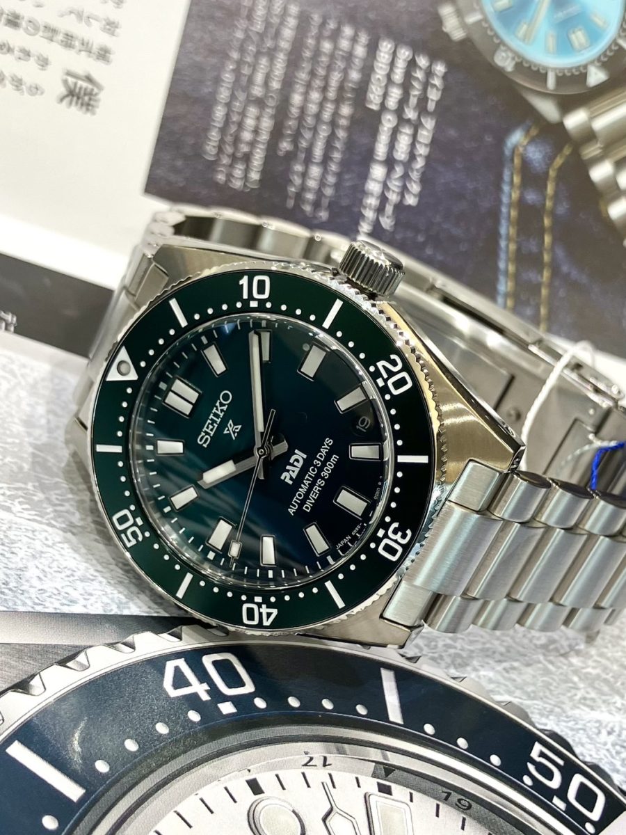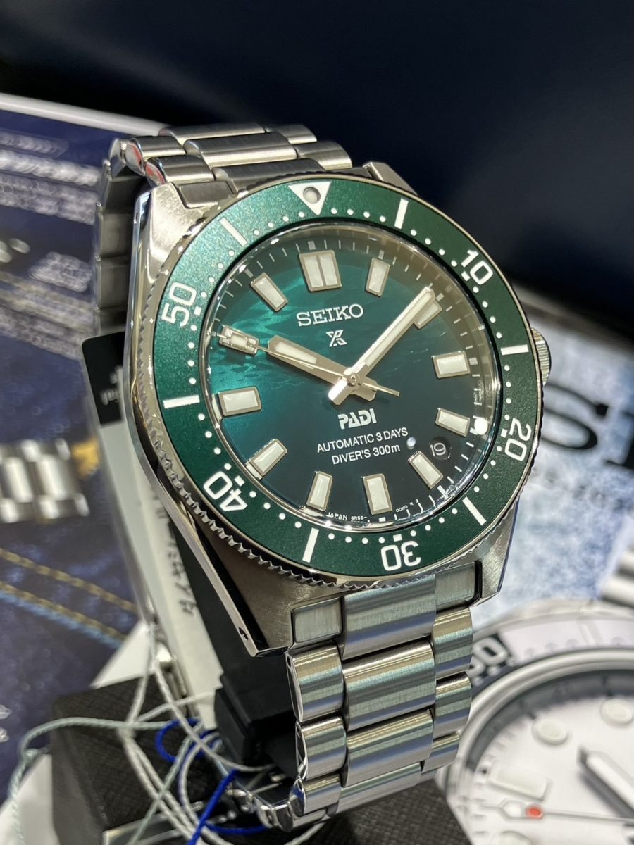 セイコーの初代ダイバーズウオッチから着想を得たシンプルかつ力強いケースデザインに、文字盤には「SEIKO」と「PADI」のダブルネームを配置した特別デザインです🤿🇯🇵