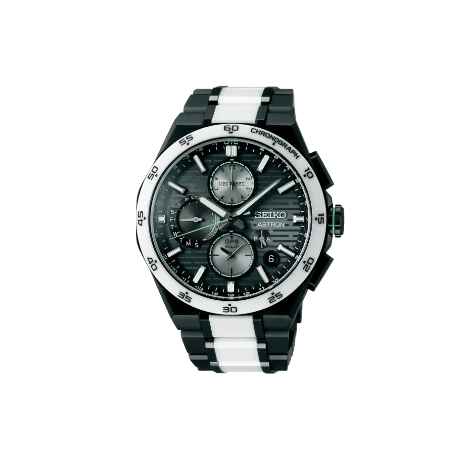 躍動感あふれる特別なカラーリングで近未来を表現した限定モデルです。ダイヤルには、線が断続的に繋がる「ホリゾンタルパターン(横縞)」の新規型打ちを採用することで、光が走り抜ける表現をしています。 さらに、ライトグリーンカラーのアクセントを加えた、スポーティなデザインが特徴です。