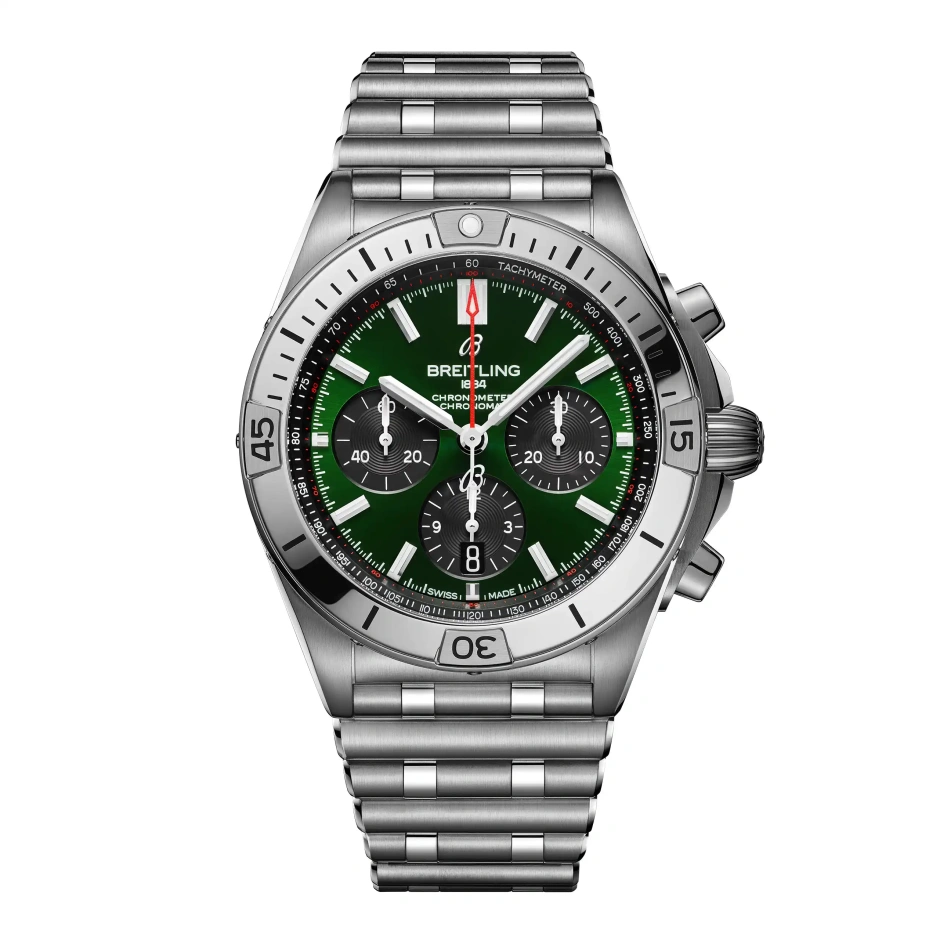 あらゆる要望に応える、ブライトリングの万能モデル。 クロノマットは、ブライトリングの歴史の中で重要な位置を占めるモデルです。 ステンレススチールの42ミリケースと4カ所にライダータブを配したアイコニックなベゼル。独特な「ルーロー」ブレスレットがしっくりと馴染みます。 ムーブメントはCOSC公認クロノメーターのブライトリング自社開発製造キャリバー01です。