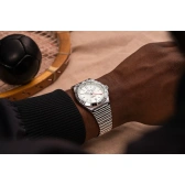 「クロノマット オートマティックGMT 40」は、デュアルタイムゾーン表示や、さりげない美しさからブライトリングの旅行者へのオマージュが感じられるモデルです。繊細なダイヤルカラーは、オールステンレススチールケースとブレスレットと相まって、どんなファッションにもマッチします。同時に、同系色で統一された24時間目盛りをGMTの赤い針がうまく引き立たせています。