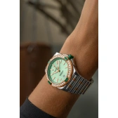 「スーパークロノマット」のコレクションで初めてダイヤモンドベゼルを備えたスーパークオートマティック38は、パワースーツやTシャツ、ジーンズと合わせても、存在感を放つようにデザインされています。「スーパー」という名前は、セラミック製のライダータブやリューズによって、他のクロノマットシリーズとは一線を画していることを表しています。 大ぶりのラボグロウンダイヤモンドが、18Kレッドゴールド製のベゼルの周りを取り囲むようにセッティングされています。