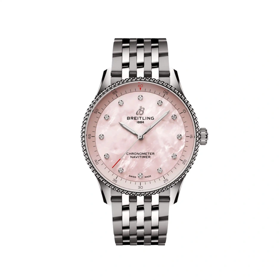 1952年にパイロットのための計器として生まれたこのコレクションは、その後、「ナビタイマー」を手にしたすべての人にとって、人生を共に歩む大切な存在になりました。 このアイコンに、小さめの腕時計の外観と感覚を好む男女に向けて、32 mmのサイズをご用意しました。32 mmモデルには、スリムな直径に適した計算尺のないシンプルなダイヤルデザインを採用しています。