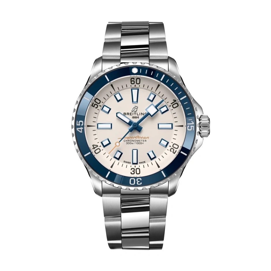 水中でのあらゆるアクティビティに適した性能とスタイル。 新しいスーパーオーシャンは1960年代のダイバーズウォッチ「スローモーション」のデザインコードを踏襲しながらもセラミックインレイベゼルや鮮やかな色のダイヤルなど現代的にアップグレードされ、ノスタルジーと新鮮なスタイルを完璧に調和させています。 幅広の針とインデックスには蓄光塗料スーパールミノバ®が塗布され、水中でも読み取りやすく実用性に優れています。