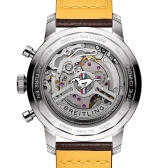 トップタイム B01 フォード マスタングは、クラシックカーのカラーとエンブレム、パンチングレザーのレーシングストラップ、スピード計測用のタキメータースケール、ヴィンテージダッシュボードのメーターを思わせるコントラスト豊かな角丸サブダイヤルが特徴です。また、ボンネットの下にはキャリバー ブライトリング01(自社開発製造)という自慢のエンジンも搭載されています。