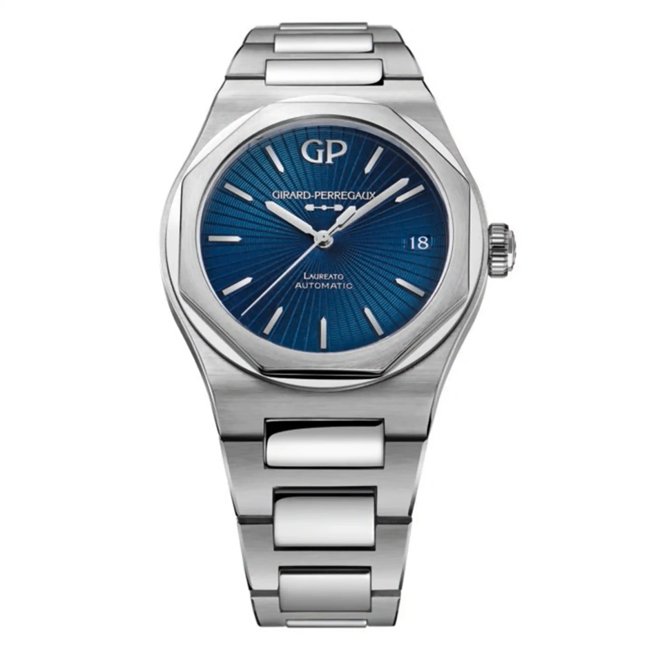 グラン・フー エナメル仕上げの文字盤を備えたロレアート 42mmはステンレススティールケースで、1975年に発売されたオリジナルの伝説的なロレアートにモダンな魅力が加わったモデルです。ウォッチの中心に組み込まれているのは自社製の自動巻きムーブメント、キャリバー GP1800で、ジラール・ペルゴの高度な専門技術を示します。