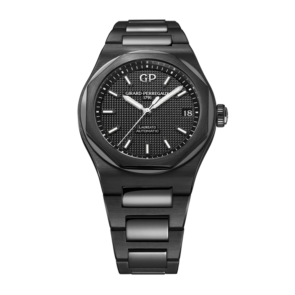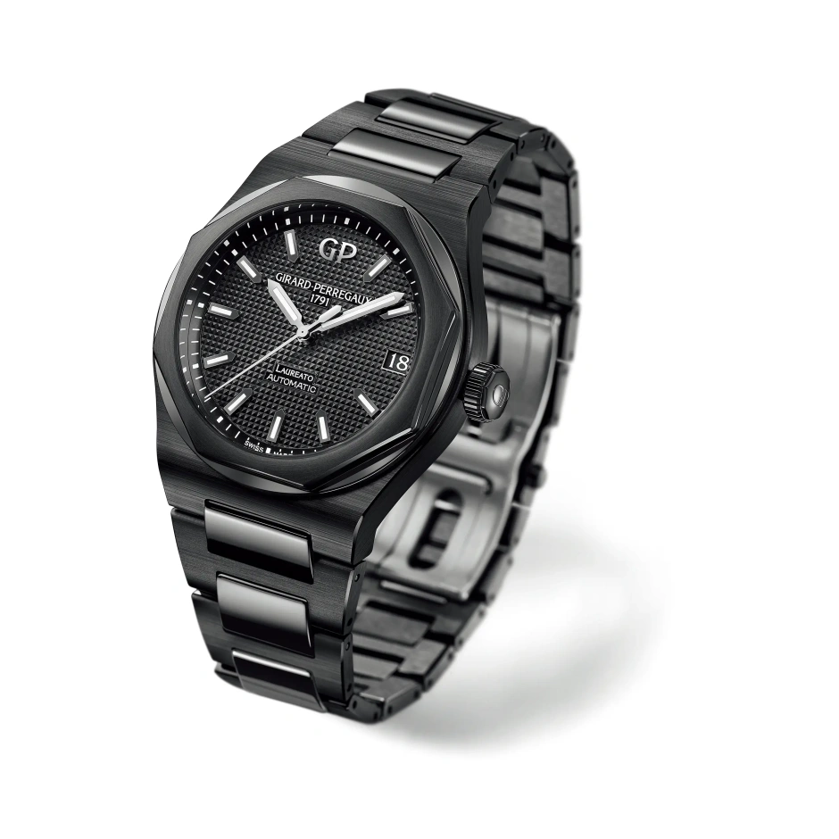 1791年創業の老舗名門マニュファクチュールブランド「ジラール・ぺルゴ」が誇るラグジュアリー・スポーツウオッチの傑作「ロレアート」コレクションより、漆黒のセラミックを使用したケース&ブレスレットのハイエンドモデルです。文字盤には職人が施したクル・ド・パリと呼ばれるピラミッド型のエングレービングが彫刻されており、角度や光の加減によって生まれる陰影や光沢の美しいコントラストが様々な表情と感動を私達の腕元に届けてくれます。