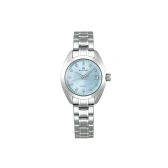 直径 27.8mm の小さなケースの中に本格的なメカニカルムーブメントを搭載した、日常で使いやすいステンレススチールモデルです。 ダイヤルには、美しい絹の布のような型打模様が施され、藍染の中でも透明感があると言われる水縹(みずはなだ)色に染められています。さらに、アワーマークに配置された 11 個のダイヤモンドが時間を見るたびに輝きを放ちます。 サファイアガラスのシースルーの裏ぶたからは、熟練の職人によって組み立てられた美しいムーブメントの動きを堪能することができます。
