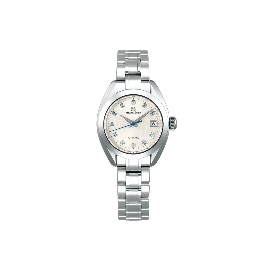 機械式時計を求める本格志向な女性のニーズにあう、日常で使いやすいステンレススチールモデル STGK007 のダイヤルは、日本古来から親しみの深い麻の布をモチーフとしたデザインが施された、しっとりと輝くシャンパンカラー。そして時間を見るたびに輝きを感じることのできる11個のダイヤモンドのアワーマーク。熟練の職人が1 本ずつ加工を施したブルーの秒針が、意志の強さを感じさせ、幅広いシーンで頼りになる存在となります。 裏ぶたは、美しいメカニカルムーブメントを堪能できるサファイアガラスのシースルーになっています。