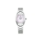 どんな装いにも合わせやすい、ケース幅26mmの小ぶりなサイズのレディス・クオーツモデルです。 ダイヤルに使用されているピンク色の白蝶貝は、しとやかな光を湛え、角度によってほのかに輝きを放ちます。 ダイヤカットを施した針やインデックスの煌めきは、美しさと視認性の調和がとれたダイヤルデザインをかなえています。 歪みのない美しい鏡面を広く取ったケースデザインが、上品な輝きを演出しています。