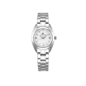 装いを選ばない小ぶりなサイズのレディス・クオーツモデル。どんな装いにも合わせやすい、ケース幅26mmの小ぶりなサイズのレディス・クオーツモデルです。ダイヤルに使用されている白蝶貝は、しとやかな光を湛え、角度によってほのかに輝きを放ちます。 ダイヤカットが施された針やインデックスの煌めきは、美しさと視認性の調和のとれたダイヤルデザインを実現し、歪みのない美しい鏡面を広く取ったケースデザインが上品な輝きを演出しています。