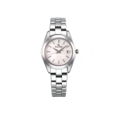 白蝶貝のダイヤルが雅な輝を添えるレディス・クオーツモデル。グランドセイコーとしての高い基本性能と機能美はそのままに、女性の手元に合わせて繊細な作り込みが施されたクオーツモデルです。歪みのない美しい鏡面仕上げが施された面と、きめ細やかな筋目仕上げが施された面の、対照的な2つで巧みに構成されたケースは、フォルムの美しさが際立ち、繊麗な輝きを放ちます。ダイヤルに使用されている白蝶貝は、角度によって現れるほのかな輝きが、細やかで優美な印象を作り出してくれます。