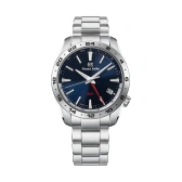 究極のクオーツを目指して開発された「キャリバー9F86」を搭載しており、本格的なスポーツデザインでありながら、スマートさを実感できるモデルです。 「時差修正機能」で、時差のある地域の時刻に合わせるときに、時計を止めずに時針のみを修正できるので、クオーツ時計の高い精度を失うことがありません。 ヘアラインを主としたケース、24時間表示の金属ベゼル、シンプルな三列バンドが硬質感を演出し、また、ねじロック式りゅうずを採用することで高い気密性、防水性を保ち、タフな使用に耐え得る耐久性も兼ね備えています。 存在感のあるGMT針と上下ツートーンのダイヤルリングが生み出すコントラストが艶のある紺色のダイヤルに映え、GMT針が指し示す時刻の昼夜を直感的に判別することができます。