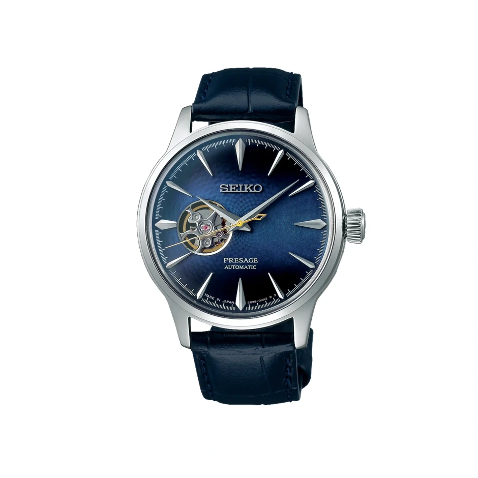 カクテルを思わせる艷やかなカラーダイヤルが特徴の「カクテルコレクション」には、カクテルグラスのステムのような細く 美しいインデックスが配されています。ボックスガラスのクラシカルなデザインに 職人技による曲げ針を採用しています。