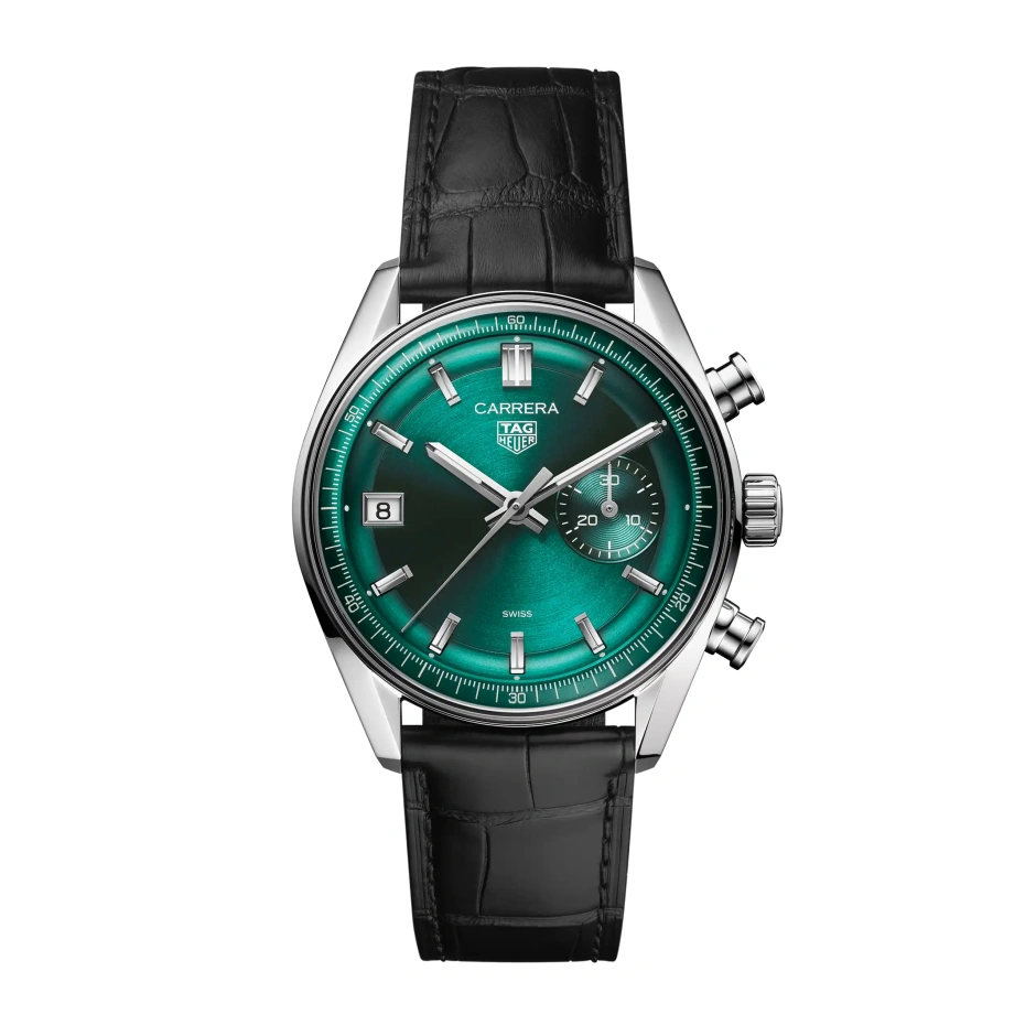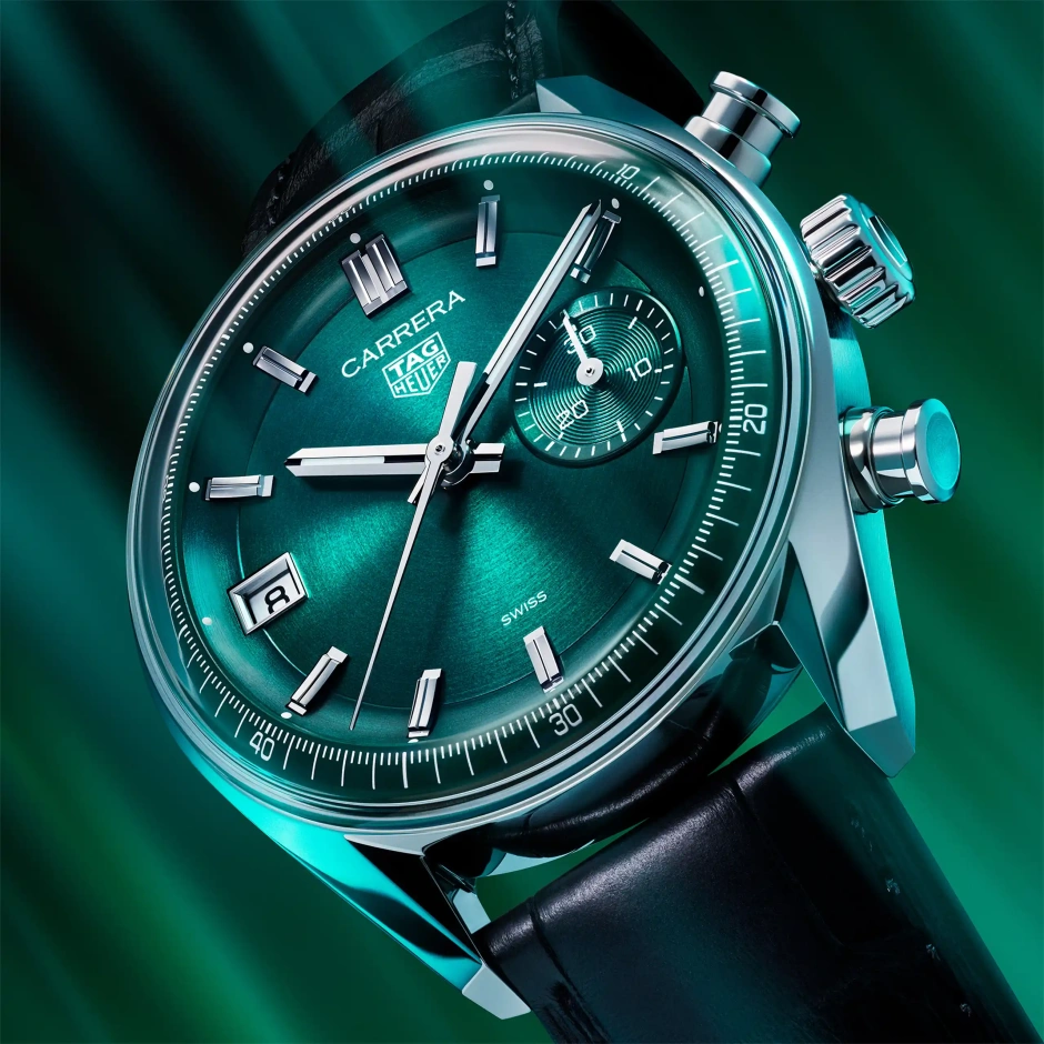 『タグ・ホイヤー』のフラッグシップ 「カレラ」60周年を迎えたコレクションの大胆なスピリットを閉じ込めたユニークなモデルです。 ヘリテージかつコンテンポラリーなエッジを効かせた39mm径のグリーンダイヤルと 1960年代のアイコニックな“DATO” デザインにトリビュートを捧げるデザインは、個性的なスタイルを鮮やかに表現。 最先端自社製ムーブメント「TH20-07」DATOを搭載したこのタイムピースには、タグ・ホイヤーのストーリーに富んだ歴史と革新的な未来が融合されています。