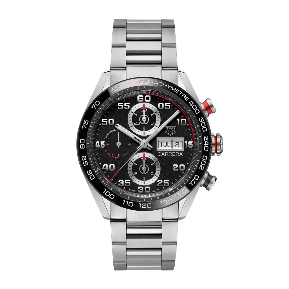 タグ・ホイヤー「カレラ」の特徴的なデザインが際立つ、レーシング・クラシックウォッチがリニューアル。ケースとダイヤルに施された数々のアップグレードと人間工学に基づく改良は、このアイコニックなクロノグラフが持つ強い個性を際立たせています。スポーティなレッドのタッチ、そして象徴的な新しいフォントの数字とテキストを配し、その存在感を主張しています。