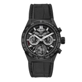 COSC認定自動巻クロノグラフとセラミック製ケースにトゥールビヨンを組み合わせたタグ・ホイヤー カレラ ホイヤー02T。 タグ・ホイヤーは手の届く贅沢というコンセプトを大切にしています。このモデルはその象徴として、手頃な高級時計という新たなカテゴリーの一環を担うウォッチです。このタイムピースのために優れた技術・品質・性能・製造技術を結集し、工業プロセスと製造コストを徹底的に統制した結果、スイスで製造されたトゥールビヨン付きCOSC認定自動巻クロノグラフとして他に類を見ない価格が実現しました。