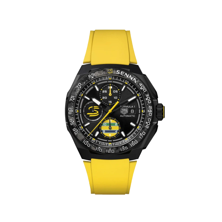 ベゼルに刻まれた「SENNA」のロゴが、アイコニックなパートナーシップを強調し、限界を超えるインスピレーションをもたらします。