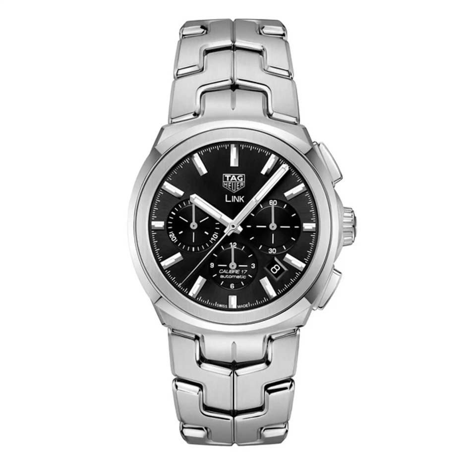 タグ・ホイヤー リンクは、ブレスレットのデザインから出発した唯一のコレクション。ブラックのダイヤルとホワイトのスーパールミノバ®を塗布したインデックスを備えた、クラシックなクロノグラフ自動巻ウォッチです。スタイリッシュでエレガントな41mmケースは、両面に反射防止加工を施した、極めて頑丈なサファイアクリスタルで守られています。