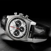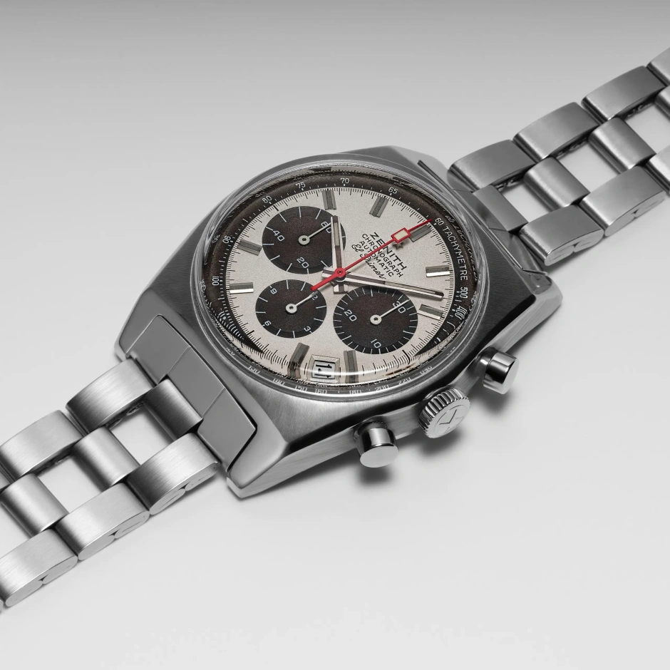 1969年に誕生した世界初の自動巻の高振動クロノグラフ、エル・プリメロ3シリーズの1本「A384」の復刻モデル。オリジナルのスチール製のゼニスウォッチを忠実に再現しており、1969年製のエル・プリメロ高振動自動巻クロノグラフキャリバーを搭載しています。トノー型ケースとパンダ文字盤はオリジナルの製造計画を使用して完璧に再現されており、ブラックのアリゲーターレザーストラップが取り付けられています。