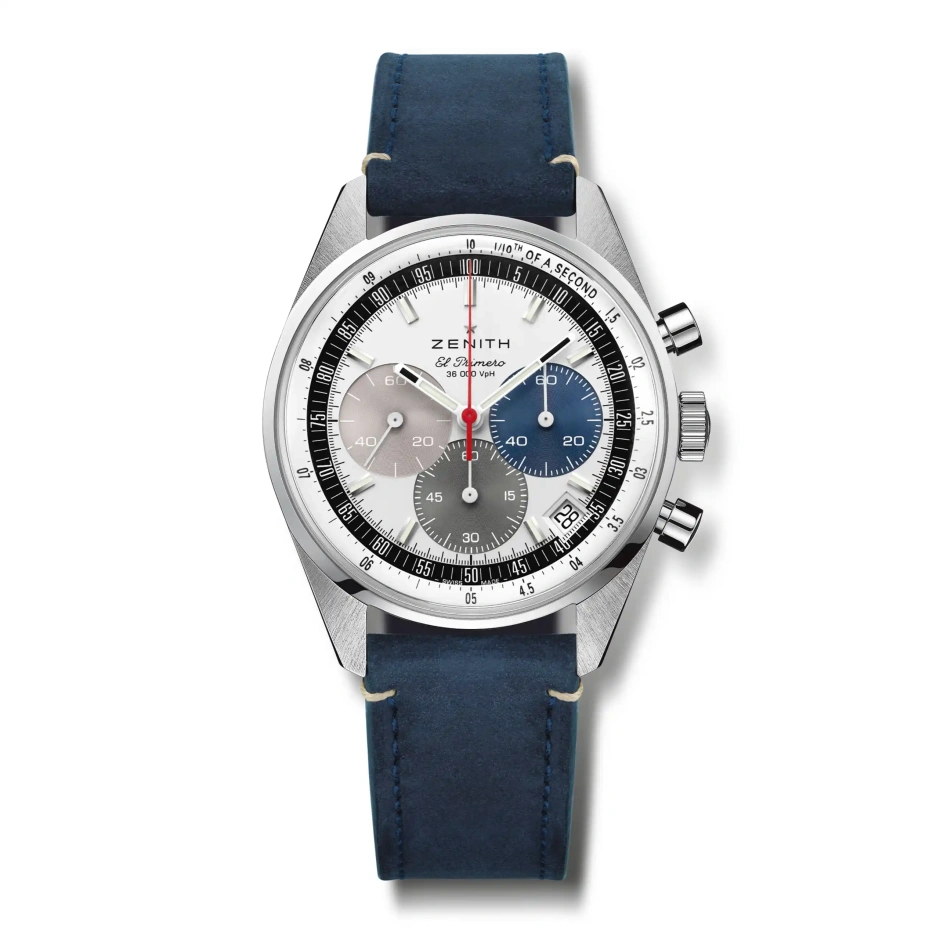 1969年に誕生したクロノマスター・オリジナル「A386」と同じフォルムの38mmスチール製ケースが付属しており、アイコニックな3色文字盤とブルーのレザーストラップが取り付けられています。高振動エル・プリメロ 3600自動巻クロノグラフムーブメントを搭載し、1/10秒精度のクロノグラフ機能と60時間のパワーリザーブを備えています。