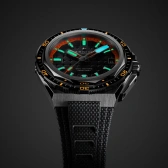 交換可能なストラップシステムが採用され、チタンブレスレットに加え、セカンドストラップが2本(ラバーストラップおよび漁網のリサイクルファブリック素材で作られたエクストラロングストラップ)付属します。