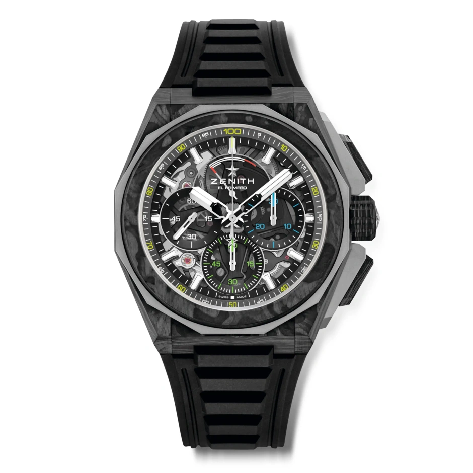 エクストリーム(極限)というモデル名のとおり、究極の精度と堅牢性を新たに表現し、過酷な環境下で妥協のないパフォーマンスを求める開拓者たちの為の高性能クロノグラフ。 ケースには軽量でありながら耐久性のあるカーボンファイバーとチタンを採用しています。 1/100秒計測の自動巻クロノグラフ「エル・プリメロ21」キャリバーを搭載。200mまで防水性を高めた45mm径の迫力と美しく視認性を向上させるよう設計された文字盤は、昼夜を問わず腕元で最高のパフォーマンスを発揮します。