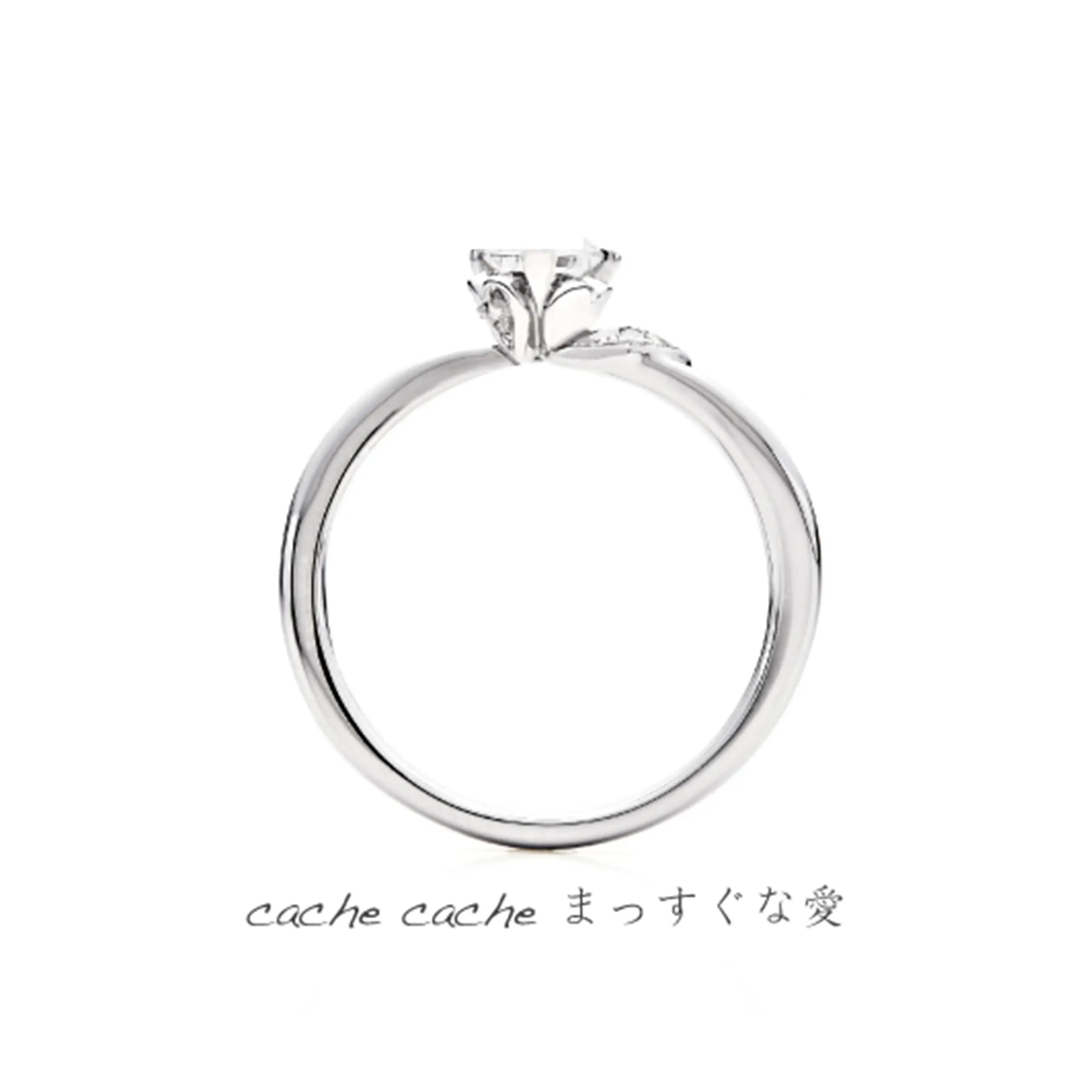 ハートのかたちがちりばめられています。見る角度や重なりで表れるハートが可愛い表情を見せるリングを目指しました。