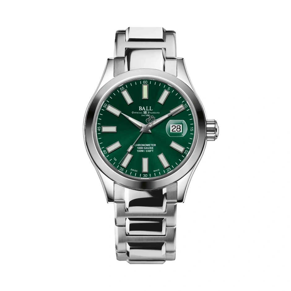 ボールウォッチの定番モデル「マーベライト」が、スイスC.O.S.C.のクロノメーター仕様のムーブメントへ、そしてケース素材が最高級の904L ステレススティールへとアップグレードされました。タフで信頼できる時計創りを掲げるボール ウォッチらしい機能として、ミューメタル製インナーケース内蔵による80,000A/mの耐磁性能と、5,000Gsの耐衝撃性も保持しています。