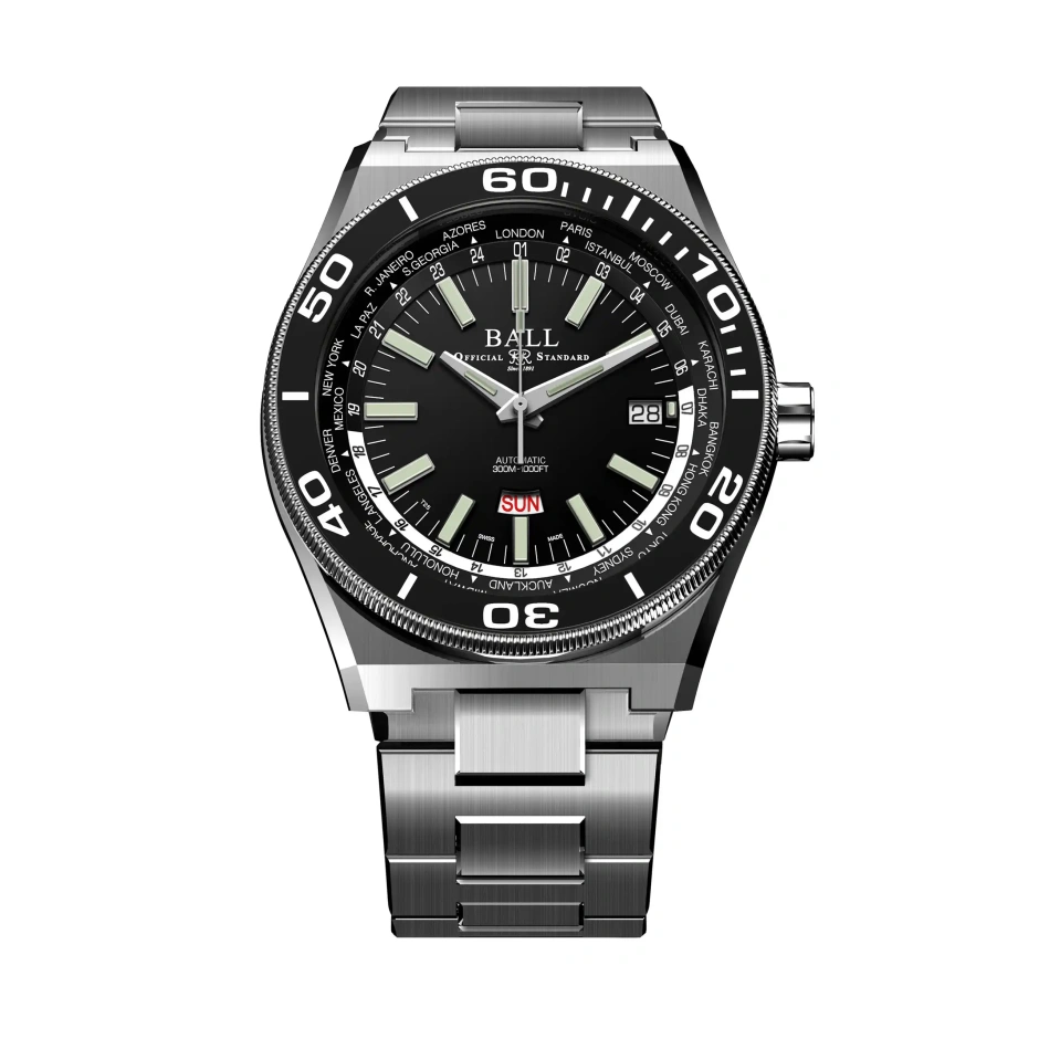 列車を走らせる線路の敷設、保守、点検を主目的とする「保線夫」を意味する「ロードマスター」シリーズ。「ワールドタイム」は、世界の主要24都市の時刻を同時に表す外周ディスクを搭載。日付・曜日表示も配するほか、スポーティーな印象を放つ逆回転防止機能付き回転ベゼルによってあらゆるシーンで活躍するダイバーズ・ウォッチです。