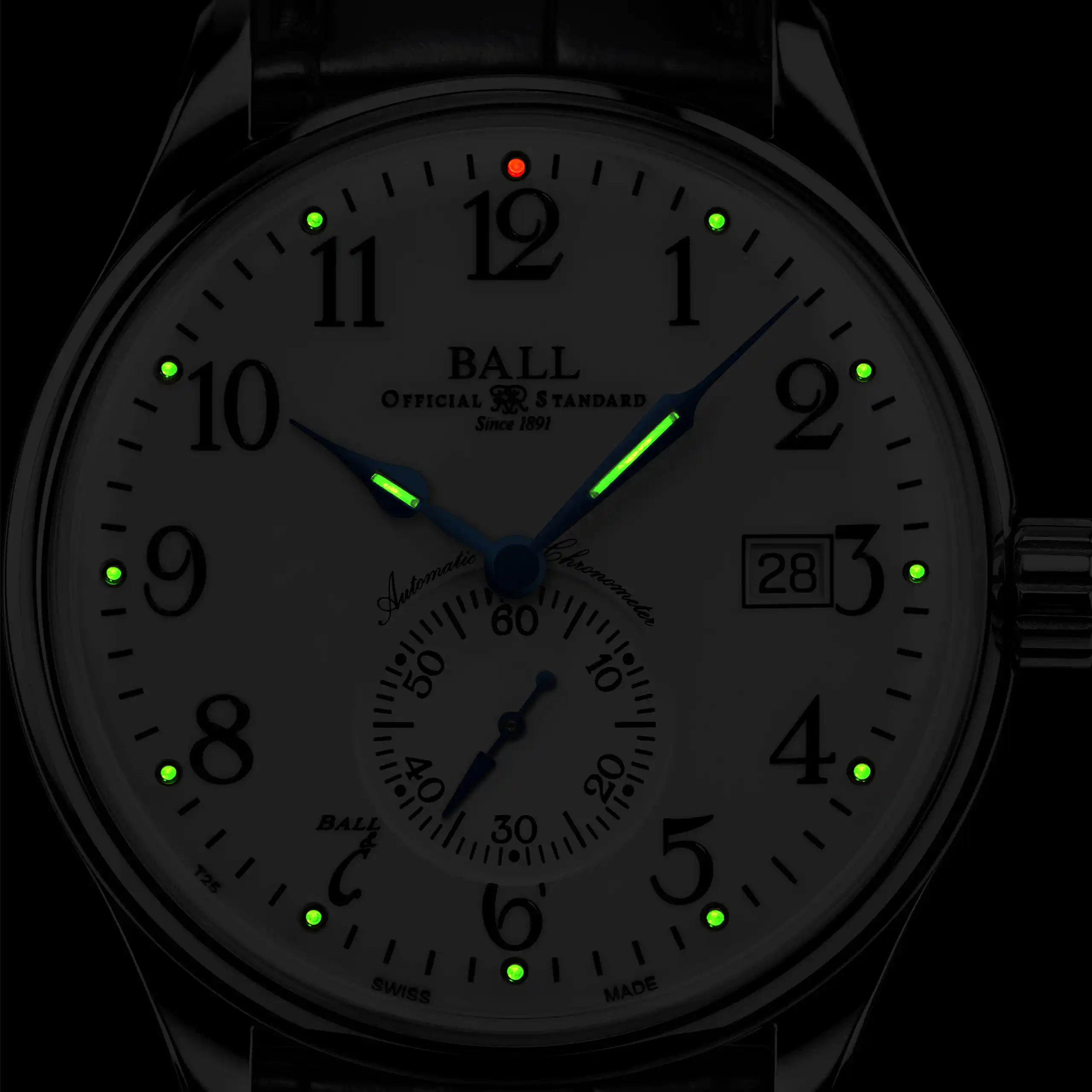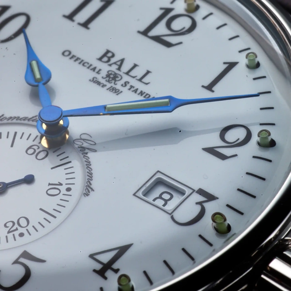 スタンダードタイムは、アメリカ鉄道網の厳格な時間管理を担った当時の公式鉄道時計(懐中時計)を、革新的な技術を用いて腕時計として現代に甦らせたブランド史上で最も美しいタイムピースです。懐中時計の全盛時代にトップグレードとされた、耐候性に優れる琺瑯(焼成エナメル)製のダイアルを再現。ホワイトラッカーを丹念に塗り重ねて磨きだしたコールドエナメルと呼ばれる手法で透明感のある白を創り出しています。
