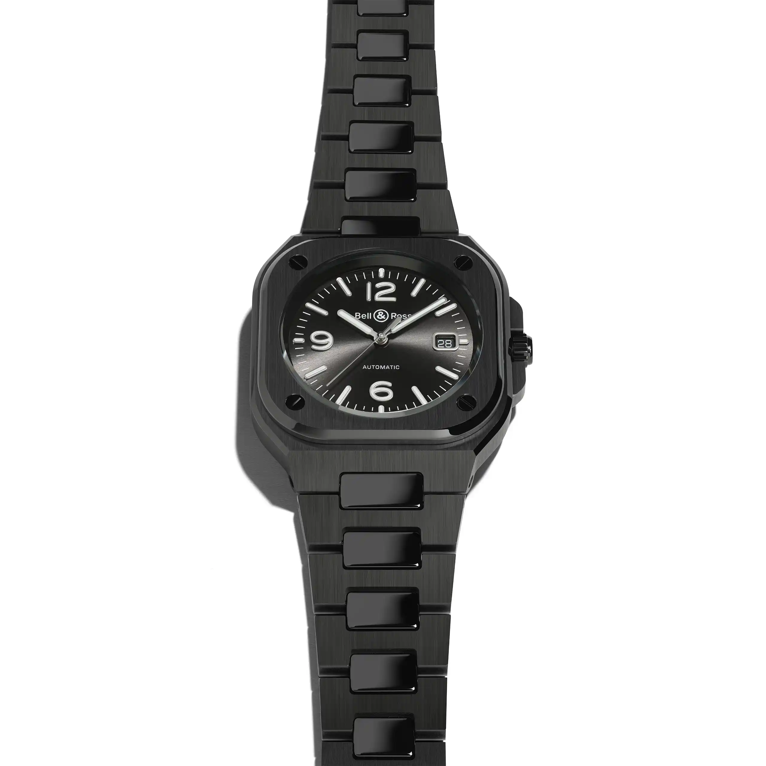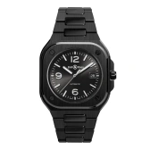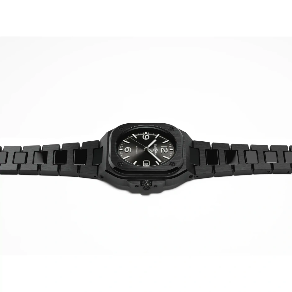 航空機のダッシュボードから着想を得たベル&ロス「BR 05」は、読み取りやすさと堅牢性の価値を具現化しミニマリズム、デザイン、現代性を巧みに融合させています。揺るぎない耐久性の為に、時計の堅牢性を保証する厳しい要求に対応する素材であるセラミックを選択しました。腐食や傷を寄せ付けないセラミックは、傷のつきにくい時代を超越した時計を作ります。またスティールよりも硬くて軽量である為、装着時の刺激が軽減され快適です。機械式自動巻きムーブメント「キャリバー BR-CAL.321-1」を搭載する事により、54 時間のパワーリザーブを保証します。