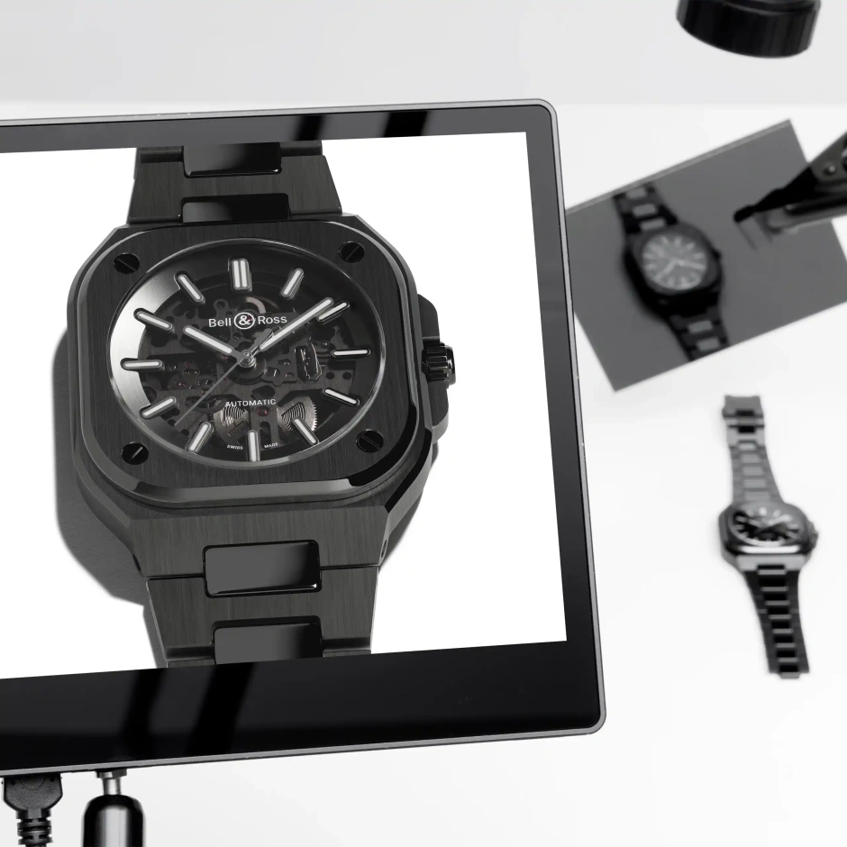 特別なスケルトンムーブメントを搭載した「BR 05 Skeleton Black Ceramic」は、高級時計の愛好家に向けられています。Bell & Ross が製造する全ての時計と同様に機能美を追求し、現代的なライフスタイルにおける日常にフィットするミニマルなエレガンスを誇ります。揺るぎない耐久性の為に、時計の堅牢性を保証する厳しい要求に対応する素材であるセラミックを選択しました。腐食や傷を寄せ付けないセラミックは、傷のつきにくい時代を超越した時計を作ります。またスティールよりも硬くて軽量である為、装着時の刺激が軽減され快適です。機械式自動巻きムーブメント「キャリバー BR-CAL.322-1」を搭載する事により、54 時間のパワーリザーブを保証します。