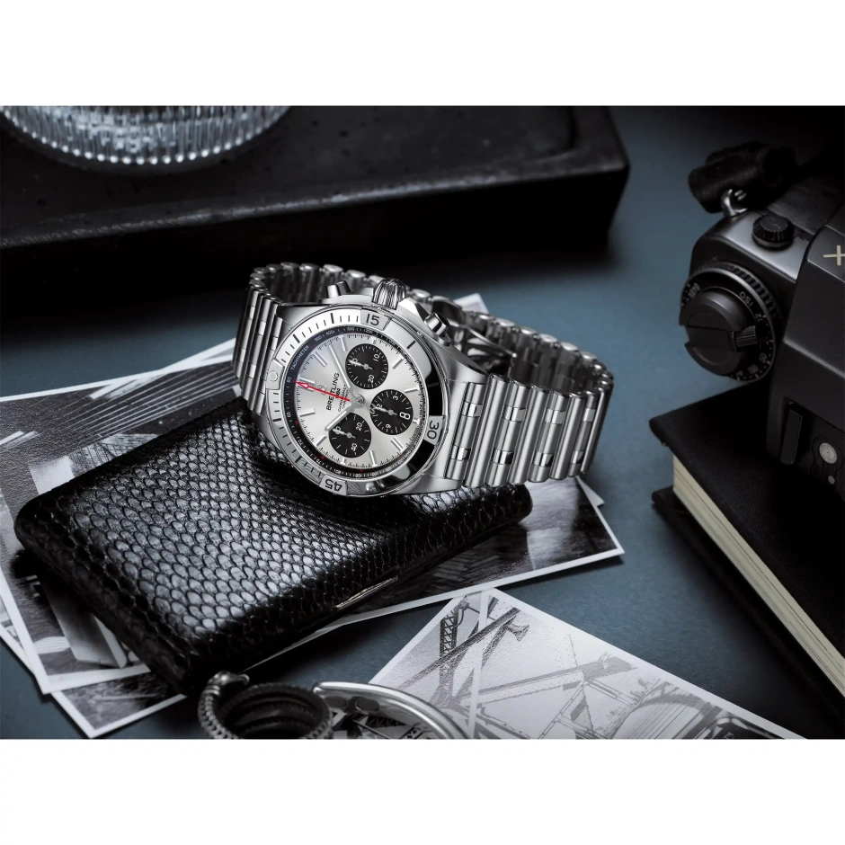 あらゆる要望に応える、ブライトリングの万能モデル。 クロノマットは、ブライトリングの歴史の中で重要な位置を占めるモデルです。 ステンレススチールの42ミリケースと4カ所にライダータブを配したアイコニックなベゼル。独特な「ルーロー」ブレスレットがしっくりと馴染みます。 ムーブメントはCOSC公認クロノメーターのブライトリング自社開発製造キャリバー01です。