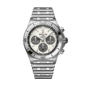 湾曲しないラグを備えた42㎜のケースに4カ所にライダータブを配したアイコニックなベゼルを装備。独特な「ルーロー」ブレスレットが際立ちます。ホワイトマザー オブ パール文字盤に金色のBロゴが映えるこの日本限定販売モデルは、機能性を維持しながら真珠母貝による唯一無二の美しさまで兼ね備えたタイムピース。ムーブメントはCOSC公認クロノメーターのブライトリング自社開発製造「キャリバー01」です。