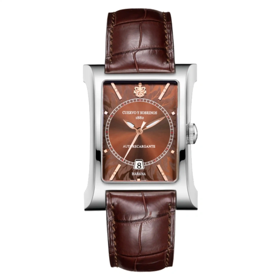 「エスプレンディドス」は、1940年代のアールデコの時代のデザインに由来しており、2002年クエルボ・イ・ソブリノスが復活を遂げた際に一番に発表されたコレクションのひとつです。シンプルなデザインだからこそ際立つ曲線の美しいケースは、当時の前衛的な試みを反映しており、エレガントで現代的な印象も感じられます。クエルボ・イ・ソブリノスのルーツであるハバナは、上質な葉巻を世界に供給しています。葉巻は、豊かな人生の象徴でもあります。ダイヤルに配されたシガーリーフのデザインが際立つ「エスプレンディドス」は、人生への嗜好と知恵を備えた人々のための贅沢な時計と言えるでしょう。