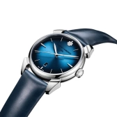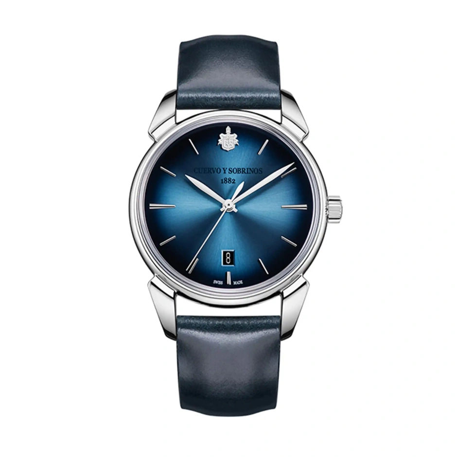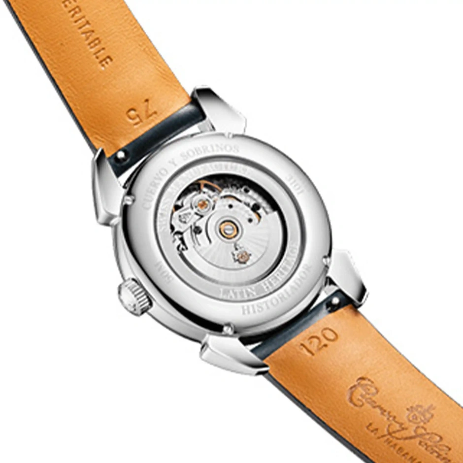『ヒストリアドール・アストゥリアス』は、1940年代に製造されたクエルボ・イ・ソブリノスを象徴するアールデコ様式美を大胆かつエレガントに取り入れたラウンドモデルを原型としています。端正なラウンドケースと、ティアドロップ(涙滴形)に猫足をミックスしたユニークなラグとの組み合わせが、当時の優雅でエレガントな雰囲気を伝えています。手首のカーブに沿うように緩やかな弧を描くラグ形状が、デザイン面だけでなく快適な装着感を実現。ケース径40mmのSS製ケースは丁寧に研磨され、美しい曲線で構成されたラウンドケースの輪郭を強調しています。