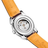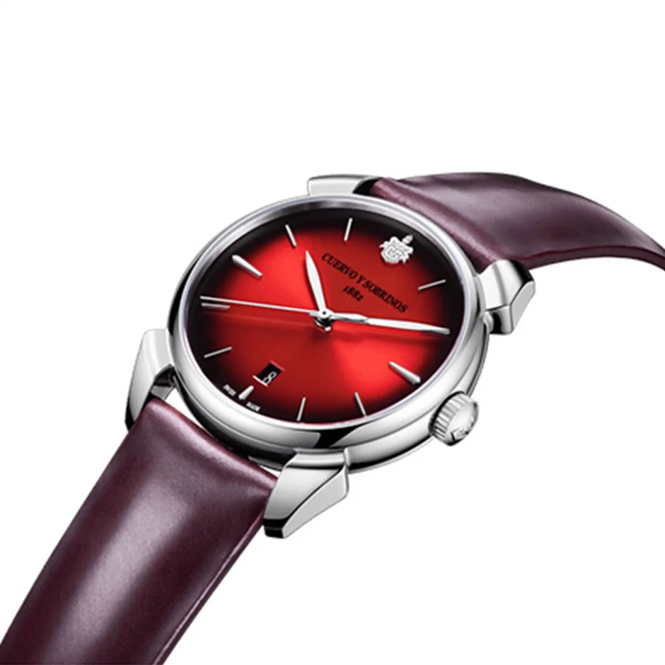 『ヒストリアドール・アストゥリアス』は、1940年代に製造されたクエルボ・イ・ソブリノスを象徴するアールデコ様式美を大胆かつエレガントに取り入れたラウンドモデルを原型としています。端正なラウンドケースと、ティアドロップ(涙滴形)に猫足をミックスしたユニークなラグとの組み合わせが、当時の優雅でエレガントな雰囲気を伝えています。手首のカーブに沿うように緩やかな弧を描くラグ形状が、デザイン面だけでなく快適な装着感を実現。ケース径40mmのSS製ケースは丁寧に研磨され、美しい曲線で構成されたラウンドケースの輪郭を強調しています。