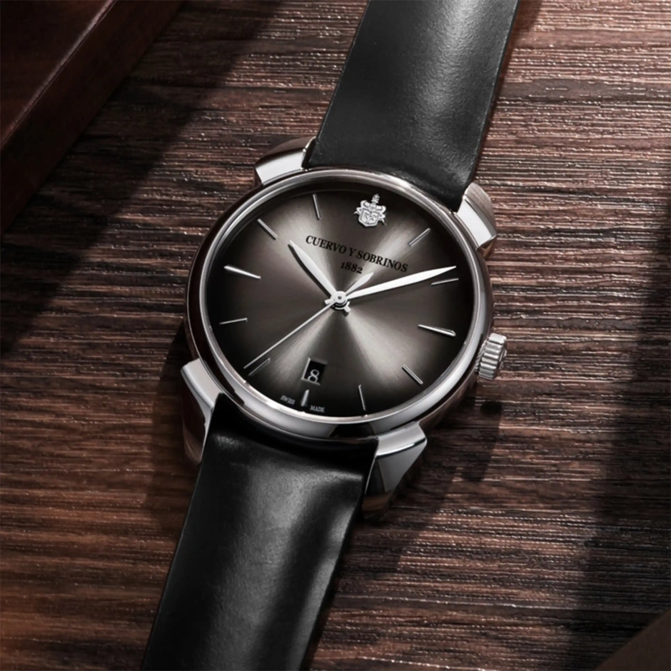 『ヒストリアドール・アストゥリアス』は、1940年代に製造されたクエルボ・イ・ソブリノスを象徴するアールデコ様式美を大胆かつエレガントに取り入れたラウンドモデルを原型としています。端正なラウンドケースと、ティアドロップ(涙滴形)に猫足をミックスしたユニークなラグとの組み合わせが、当時の優雅でエレガントな雰囲気を伝えています。手首のカーブに沿うように緩やかな弧を描くラグ形状が、デザイン面だけでなく快適な装着感を実現。ケース径40mmのSS製ケースは丁寧に研磨され、美しい曲線で構成されたラウンドケースの輪郭を強調しています。