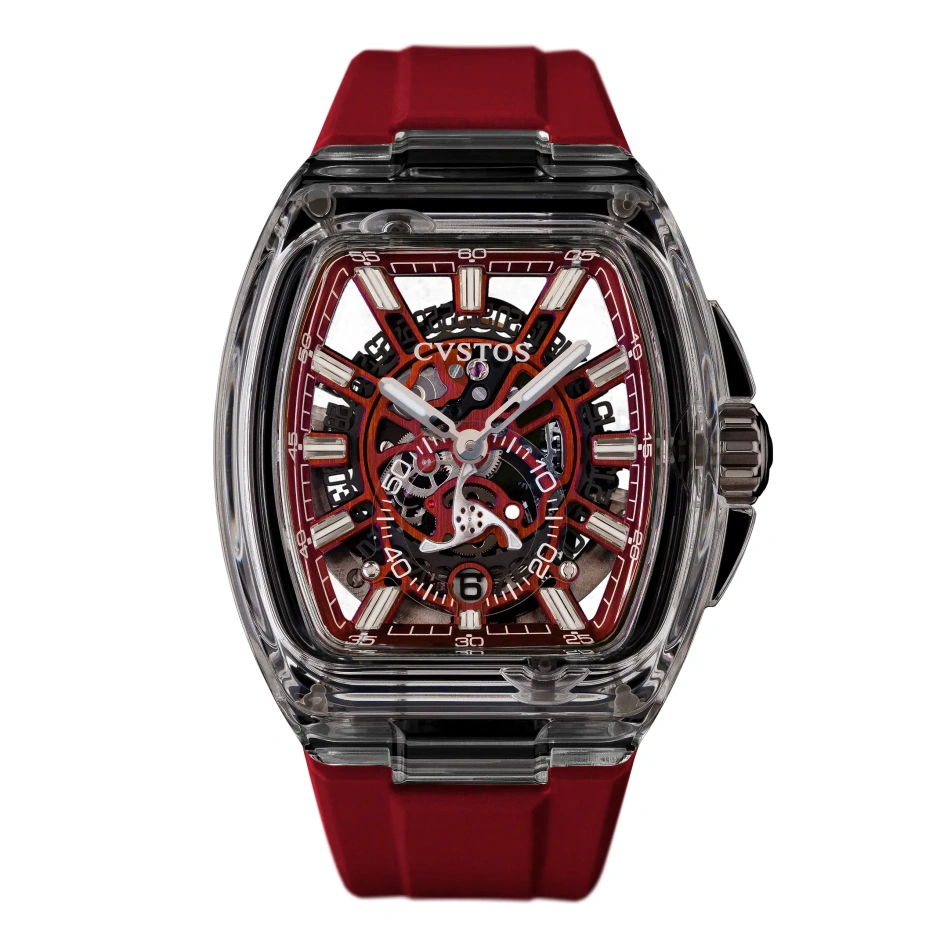 “洗練された都会”をテーマに制作されたクストスの新時代を象徴する「メトロポリタン」コレクションよりサファイアクリスタルケースを採用したラグジュアリーな限定モデルです。 世界中の都市に溶け込む高いデザイン性で、ハイテク、スポーティー、エレガンスというクストスならではのDNAをスタイリッシュに表現。 微弱な永久磁石でスモール セコンドの駆動を安定させる新技術を採用したメカニカルムーブメントを搭載し、機械式時計のムーブメントをスケルトンで表現するクストスならではの唯一無二のスタイルが体現されています。