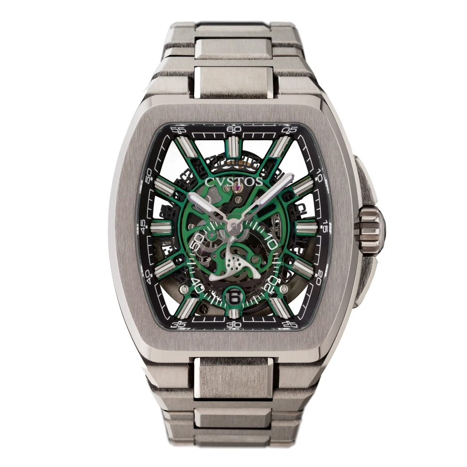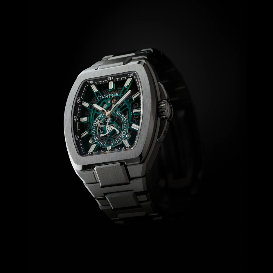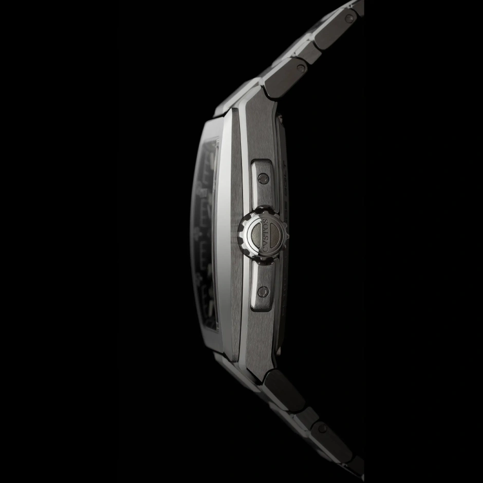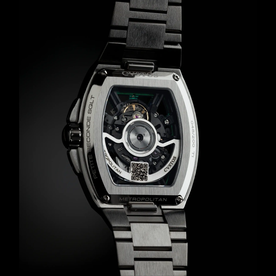 “洗練された都会”をテーマに制作されたクストスの新時代を象徴する「メトロポリタン」コレクション。世界中の都市に溶け込む高いデザイン性で、ハイテク、スポーティー、エレガンスというクストスならではのDNAをスタイリッシュに表現しています。 ブレスレットのリンク部に巧みに彫刻された模様は、ケースに施した洗練を極める仕上げ加工と完璧にマッチしているだけでなく、腕に着けたときの装着感を最適にする役割も果たしています。 ツールを使わずにストラップを交換できるシステムは特許を取得しており、ラグの裏側に組み込まれたシングルプッシュボタンを押すと、ブレスレットからオプションのラバー ストラップやアリゲーターストラップに簡単に交換することができます。