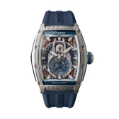 エレガントでありながらスポーティな洋上の精神を形にした「チャレンジ シーライナー P-S オートマティック」。機械式時計にとっての敵であった“磁力”をムーブメント内部に採用し新たな技術革新を追及しています。 航海から生まれた美学に着想を得て、透明のダイアルとシースルーバックを採用し、ムーブメントの見事な機構を楽しむことができる、視認性の高いデザインに仕上げられています。6時位置にあるスモールセコンドには、船のスクリューを想起させる羽根車が取り付けられ、機能性がデザインにおいても表現されています。