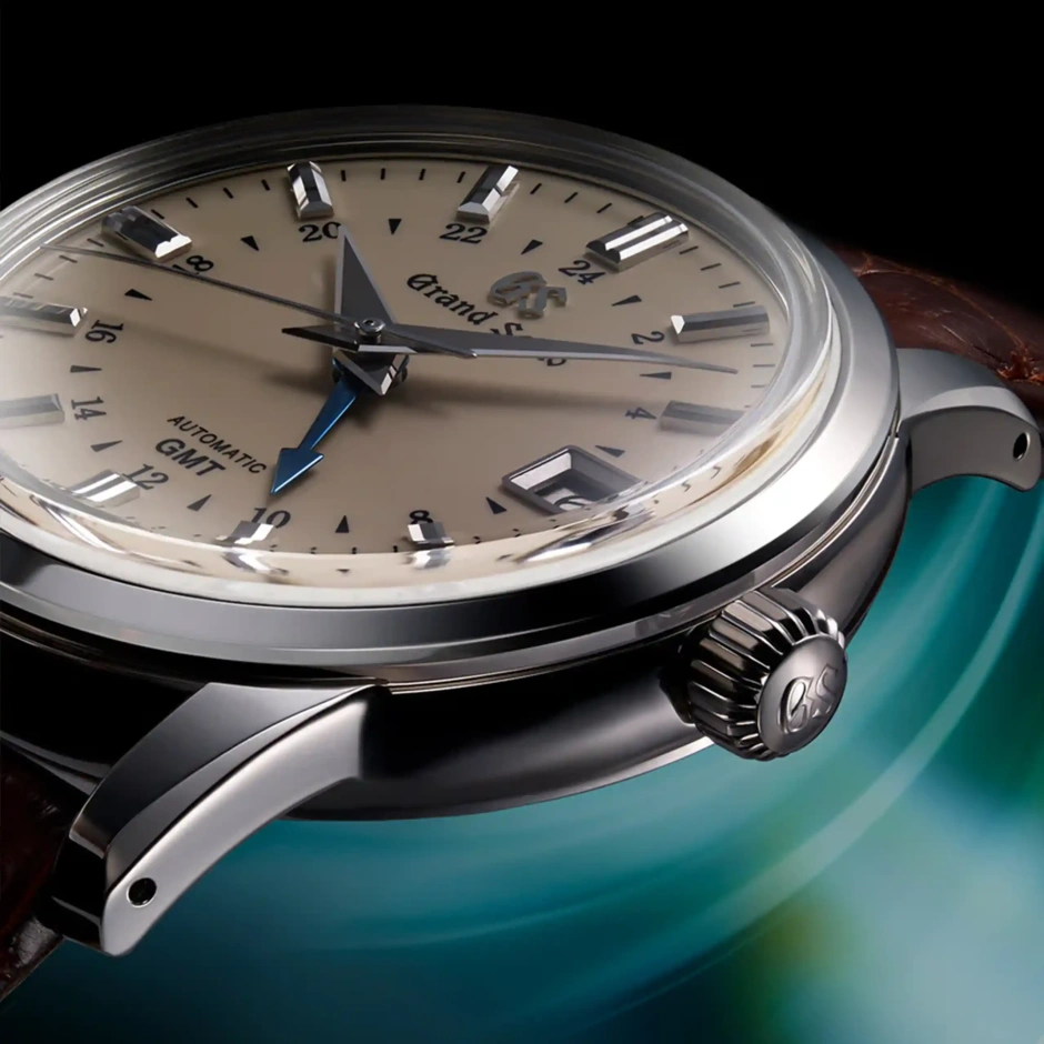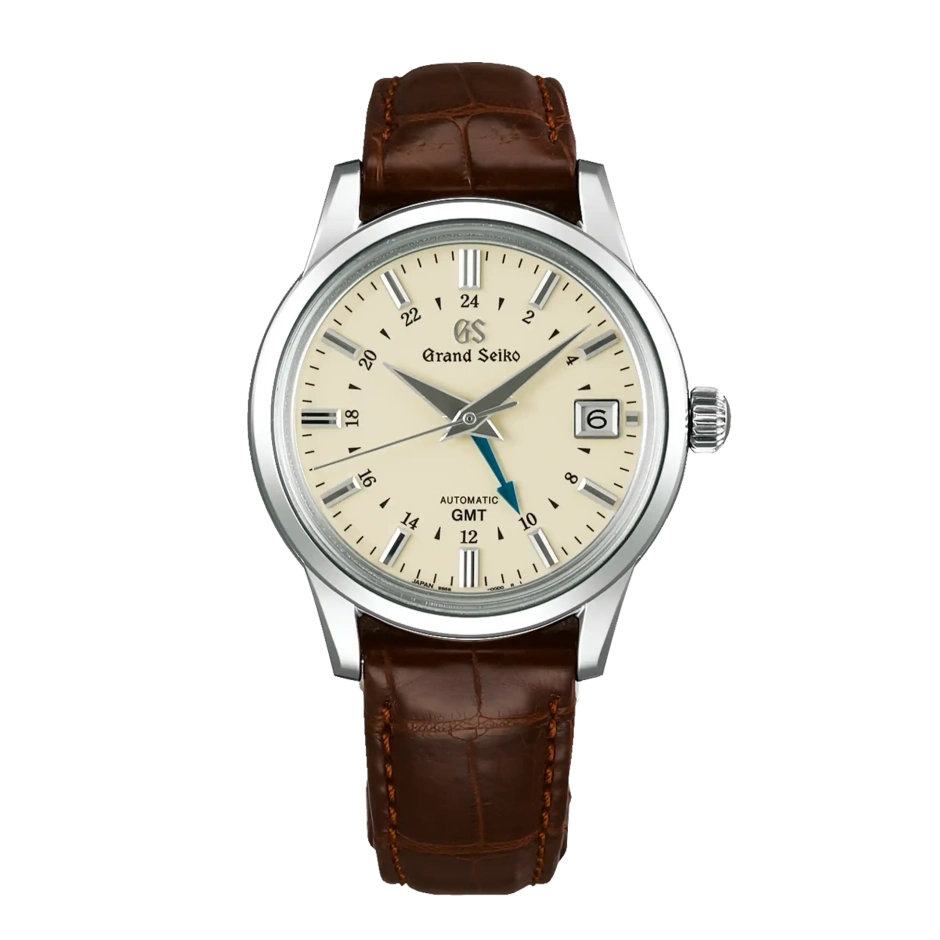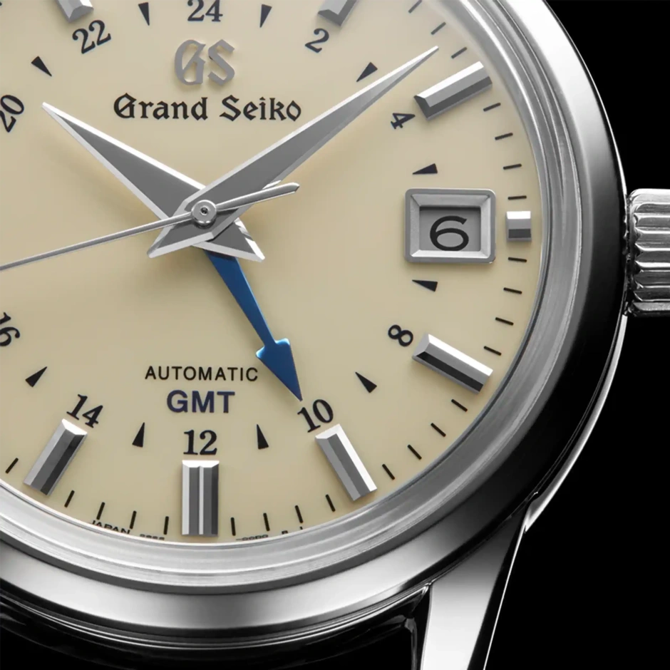 長きにわたって親しまれてきたクラシックデザインにGMT機能を付加したこちらのモデルは、最大巻上時約3日間持続を可能にした「キャリバー9S66」を搭載しています。デザイナーの小杉修弘によって生み出されたこのデザインは、味わい深いアイボリーのフラットダイヤル、ボックス型サファイアガラス、ブルースチールの24時針など、クラシックな趣をより高めながら、シャープな光を放つ針とインデックスが、モダンな雰囲気を醸し出し、グランドセイコーらしい優雅さをまとうスタイルを作り上げています。