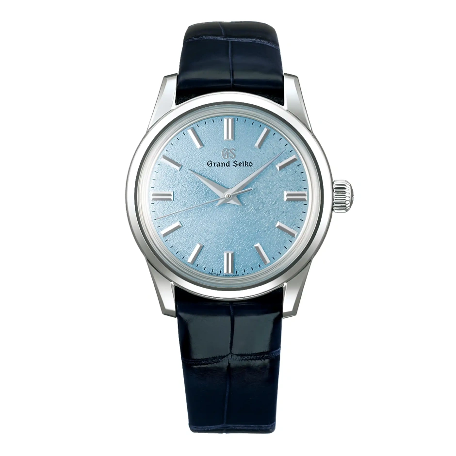 春から夏にかけて移ろう季節を表す「季春 (きしゅん)」の美を表現したモデル。匠たちが感じる初夏の若葉や、青葉の香りを含んだ穏やかな風を彷彿する爽やかなダイヤルカラーが特徴で、この時季特有の青空や、地面に移る影が次第に濃くなっていく様子がカラーリングの源です。 グランドセイコースタジオ 雫石で匠によってひとつひとつ手を尽くされた手巻きのムーブメントCal. 9S64を搭載した薄型のフォルムが、腕周りをすっきりと演出します。 日本の美しい季節の移ろいを腕に宿すモデルです。