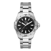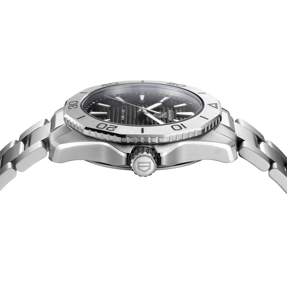 タグ・ホイヤー「アクアレーサー」コレクションは、どのような状況にも耐えられるように作られた、信頼できるラグジュアリーツールウォッチです。どのような冒険にもすぐに挑戦できる汎用性の高いエレガントなルックスを備えたこのモデルのケースとブレスレットには、ステンレススティールを採用。人間工学に基づく最適な形状と仕上げで非常に快適な着け心地です。