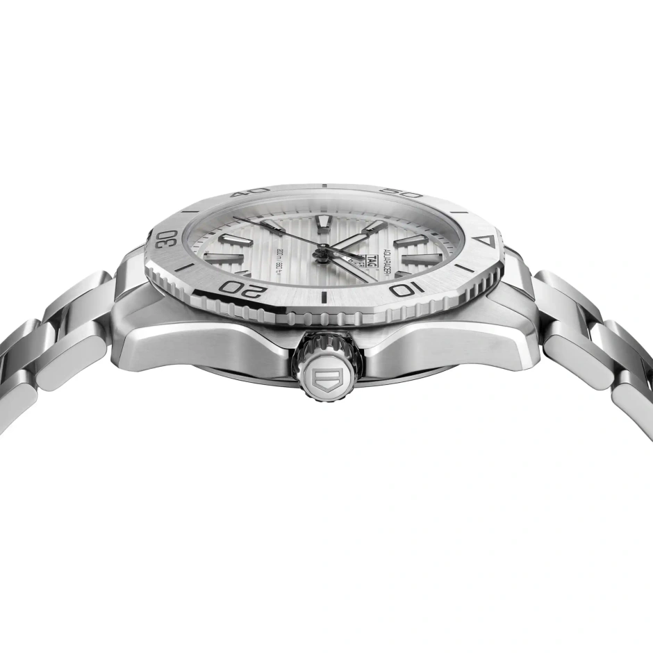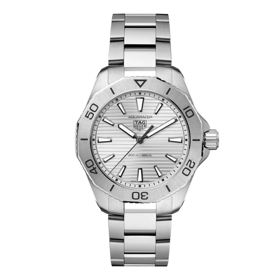 タグ・ホイヤー「アクアレーサー」コレクションは、どのような状況にも耐えられるように作られた、信頼できるラグジュアリーツールウォッチです。どのような冒険にもすぐに挑戦できる汎用性の高いエレガントなルックスを備えたこのモデルのケースとブレスレットには、ステンレススティールを採用。人間工学に基づく最適な形状と仕上げで非常に快適な着け心地です。