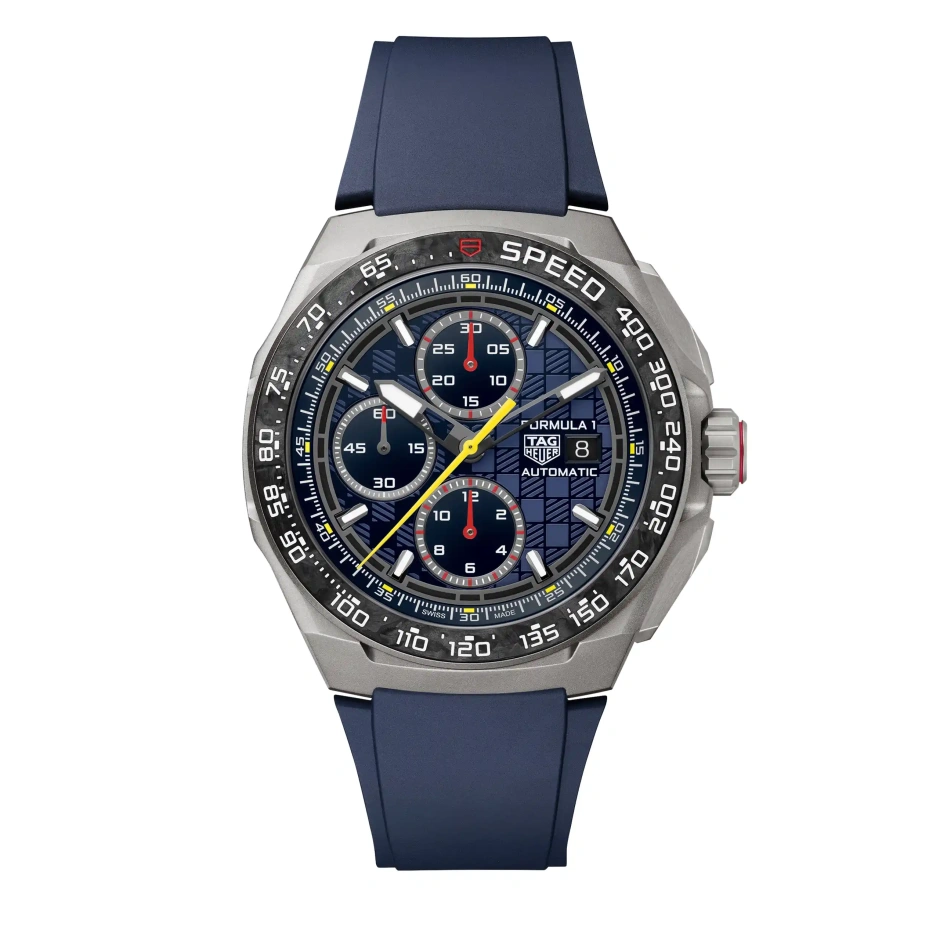 タグ・ホイヤーが誇るモーターレーシングのDNAが前面に押し出された、タグ・ホイヤー 「フォーミュラ1 クロノグラフ × オラクル・レッドブル・レーシング」。オラクル・レッドブル・レーシングチームにオマージュを捧げる、印象的なタイムピース。チームのアイコニックなレーシングカラーに最先端の素材を組み合わせた、究極のモータースポーツウォッチです。